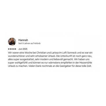 In unseren 3 Ferienwohnungen "Moosmühl-Stube", "Loft Hauchenberg" und "Loft Sonneck" ist man sofort zuhause und startet in den Urlaub.