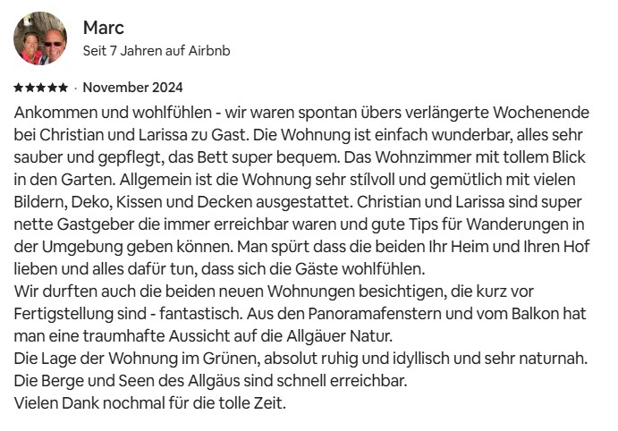 Auszug unserer Gästebewertungen